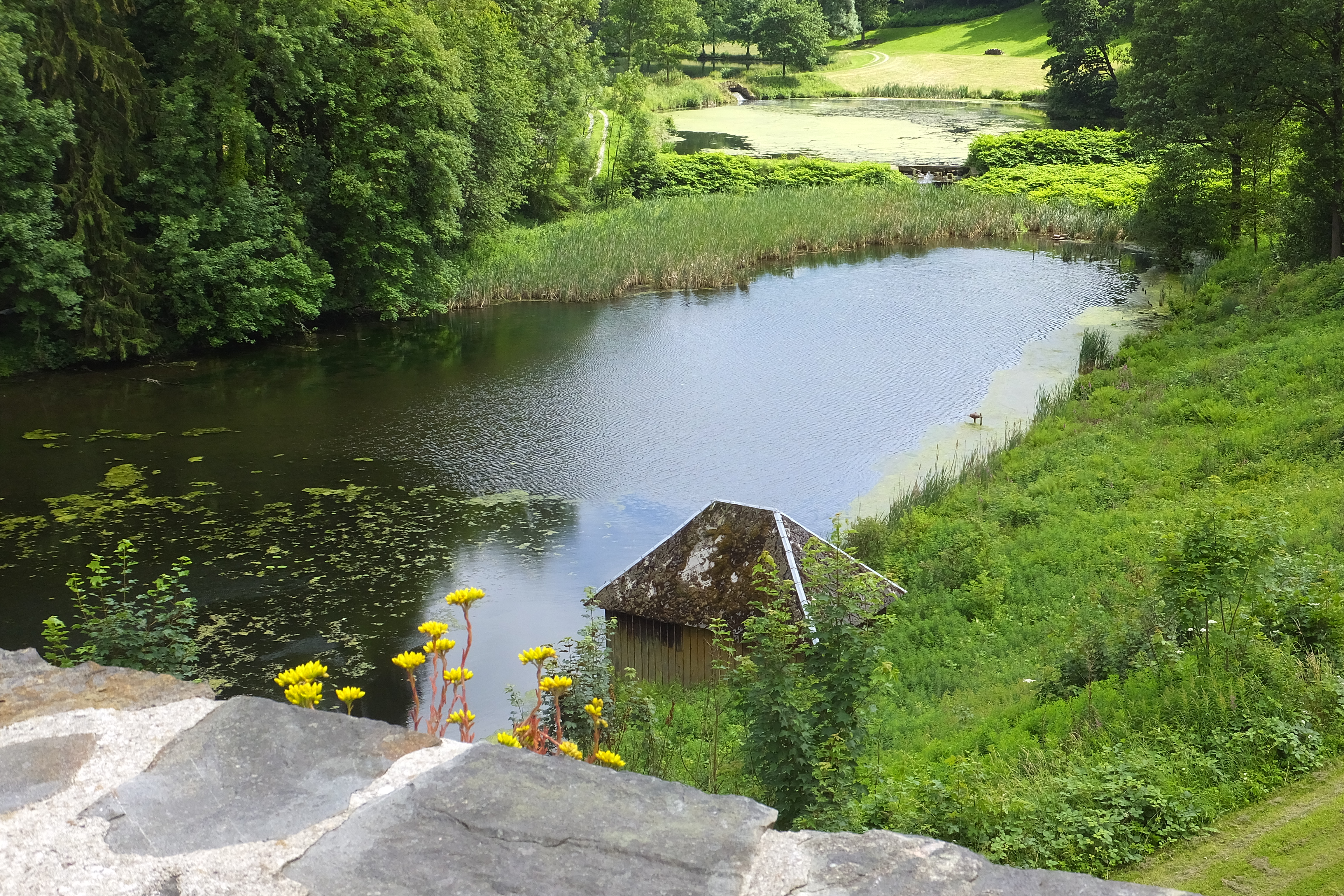 DSCF5997La vue des étangs, à partir de la terrasse du château, m’avait touchée. Elle servait de décor extérieur à la table d’écriture où je m’étais inscrit. L’angle de prise de vue était difficile à appréhender, le soleil d’été écrasait la lumière de l’écran de l’appareil photo. Un peu au jugé, j’en avais pris quelques exemplaires. Le résultat final, de la prise de vue sur mon pc était probant, l’adage chinois  » Une image vaut 10 000 mots » prenait son sens.