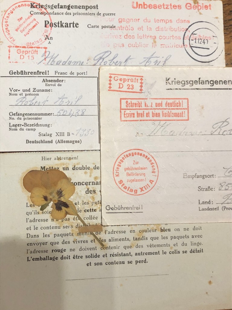 Après quelques mois de guerre, le retour de l’exode, la correspondance avec les prisonniers s’était établie, sans doute, sous les effets des efforts de la Croix-Rouge.